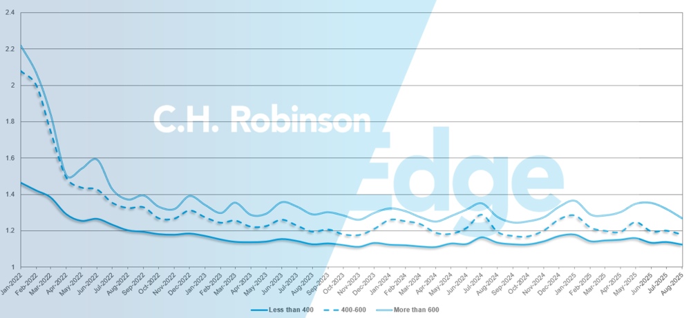From a mileage perspective, long hauls of more than 600 miles had a route guide depth of 1.27 in August, which is better compared to the prior month of July 2025, at 1.32 and better compared to August 2024, which was at 1.28. The trend for shorter hauls of less than 400 miles is similar. Route guide depth for August 2025 on these shorter hauls was 1.12, which is slightly better than the previous month of 1.14 and better than August 2024 at 1.13.