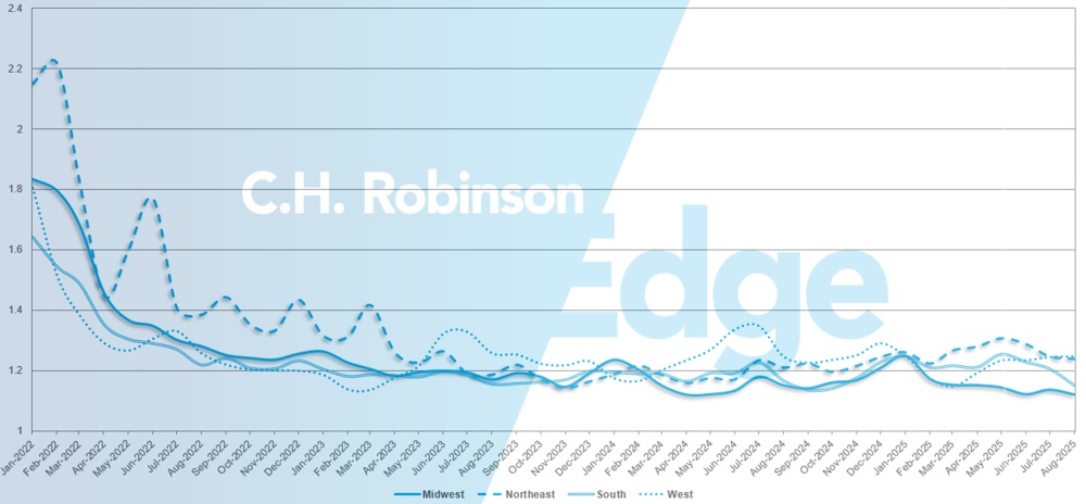 In the Pacific Northwest, outbound demand is set to increase as the apple harvest ramps up in early October. Shippers should anticipate higher rates and tighter capacity through the fourth quarter, though stronger volumes may also improve backhaul opportunities into the region.