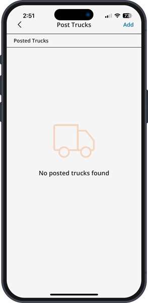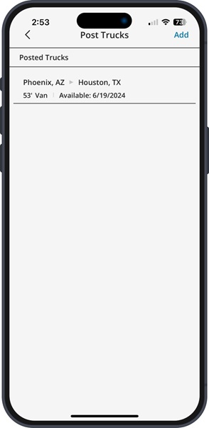 To get started, tap the “Add” button in the top right corner and then start entering your information, including truck origin, destination (this is needed), pickup date, equipment type, capacity, and length.