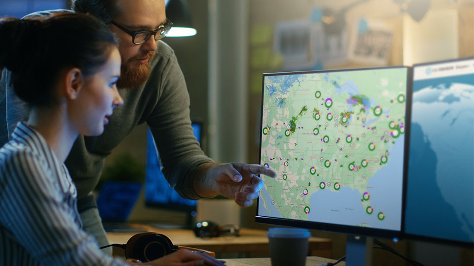 Los mapas mejorados le permiten ver sus envíos, además del clima, el tráfico y el monitoreo geopolítico para una visión holística.