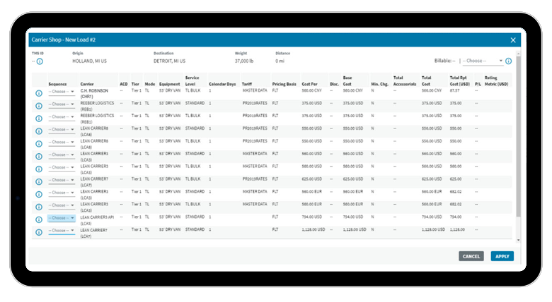 Notre intégration avec e2open vous permet de vous rendre là où vous le souhaitez. En combinant l'une des plus grandes plateformes logistiques au monde avec la puissance de la solution TMS basée sur le cloud la plus déployée au monde, vous pouvez gagner du temps et de l'argent. Avec plus de fret routier que quiconque en Amérique du Nord, nous offrons une assurance de capacité de transport inégalée.
