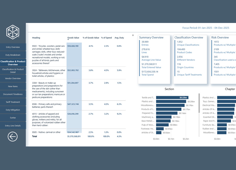 Oceniaj zgodność na poziomie jednostek SKU i szacuj ryzyko dzięki codziennym aktualizacjom zapewniającym wgląd w odprawy celne w czasie niemal rzeczywistym.
